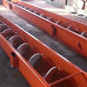 無(wú)軸螺旋輸送機(jī)主要由驅(qū)動(dòng)裝置、頭部裝配、機(jī)殼、無(wú)軸螺旋體、槽體襯板、進(jìn)料口、出料口、機(jī)蓋(需要時(shí))、底座等組成。